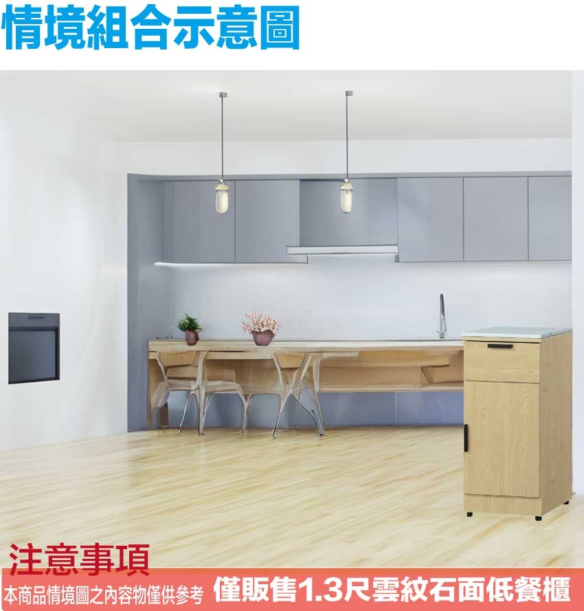 - ◆產品名稱:【綠家居】卡瑪1.3尺雲紋石面低餐櫃