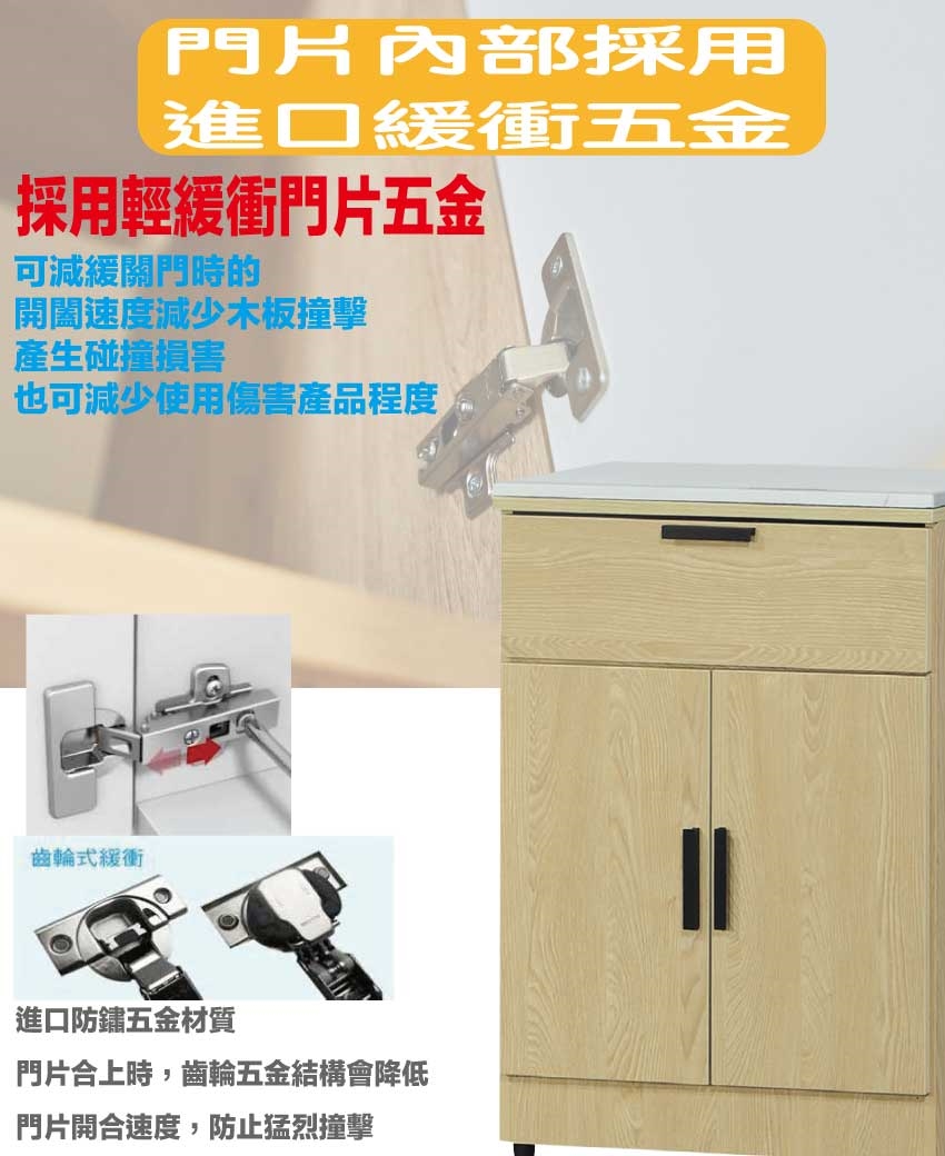 材質:防蛀木心板+防潮耐磨底座(可調高低水平)+防夾手緩衝門片五金+2cm雲紋石面桌面板 -