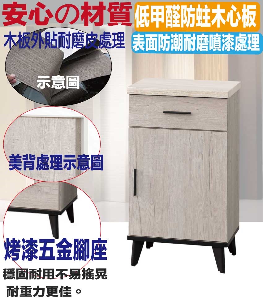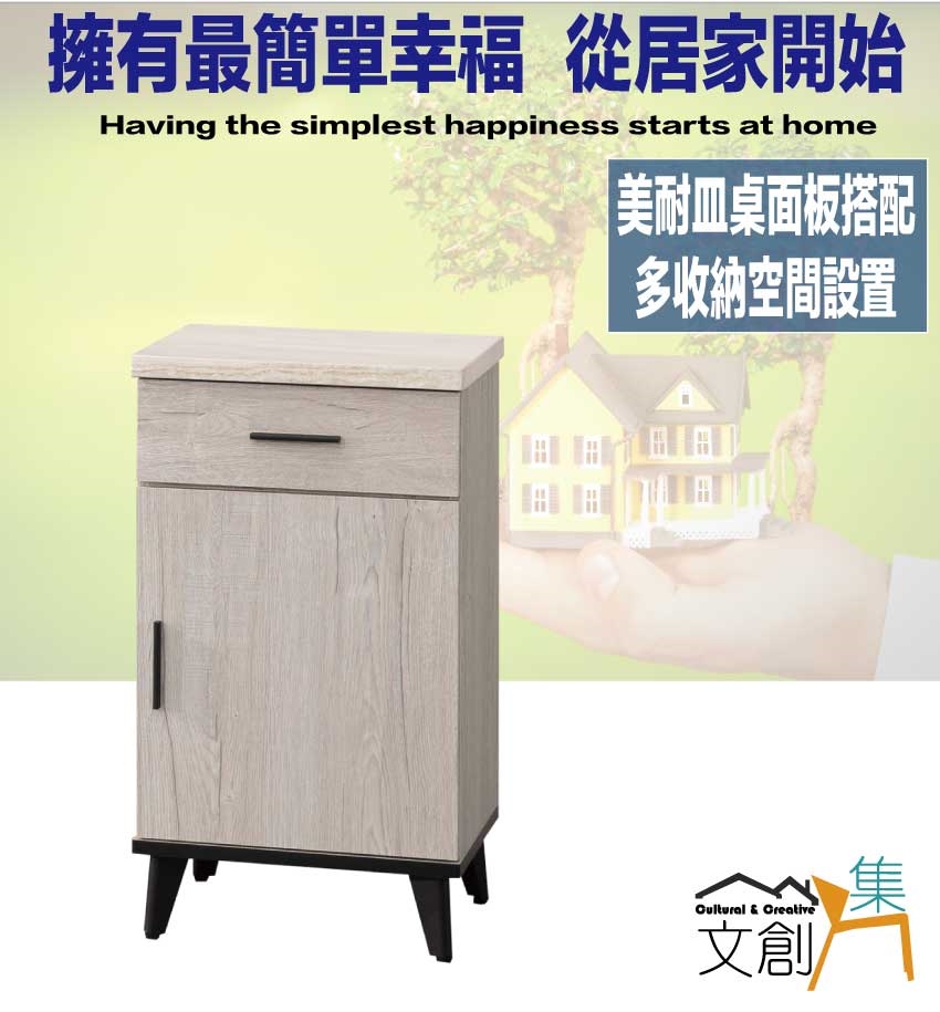 - 產品名稱:【綠家居】凱曼雙色1.5尺單門單抽低餐櫃(仿石紋耐磨美耐皿桌面板)