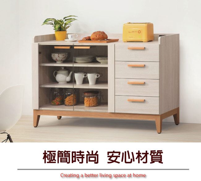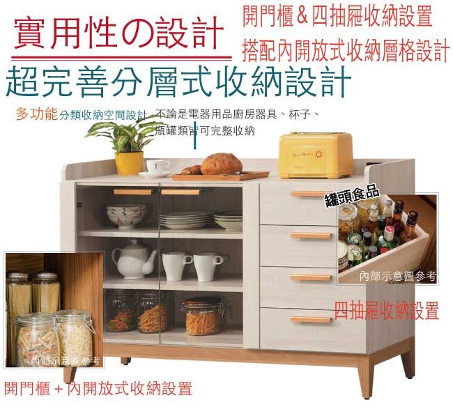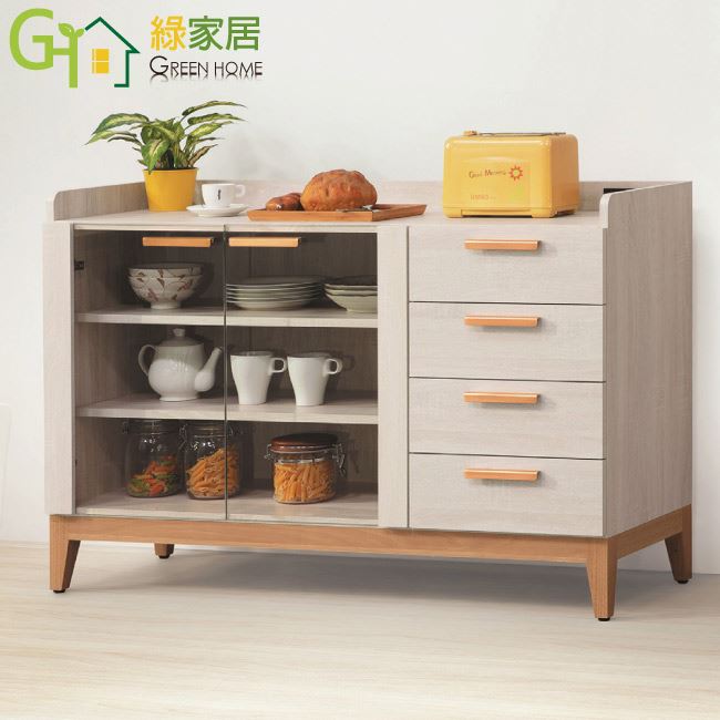 【綠家居】伊森瑪 雙色4尺二門四抽餐櫃/收納櫃