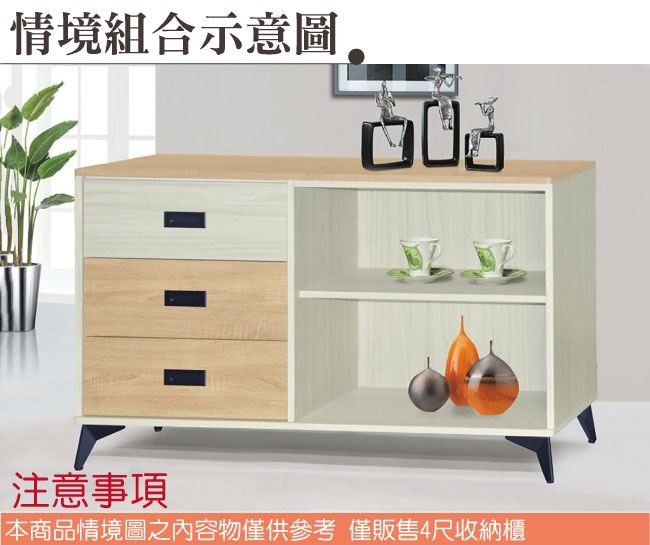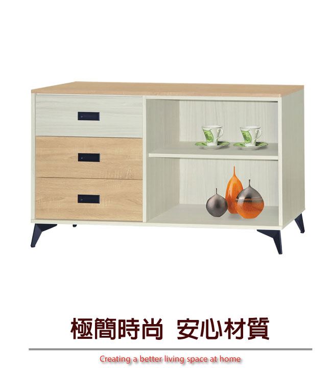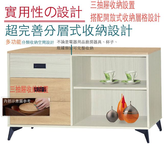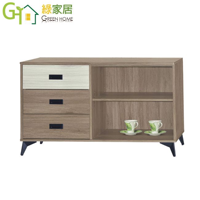【綠家居】甘托克 現代4尺三抽開放式餐櫃/收納櫃(二色可選)