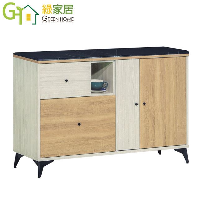 【綠家居】甘托克 現代4尺雲紋石面餐櫃/收納櫃(二色可選)
