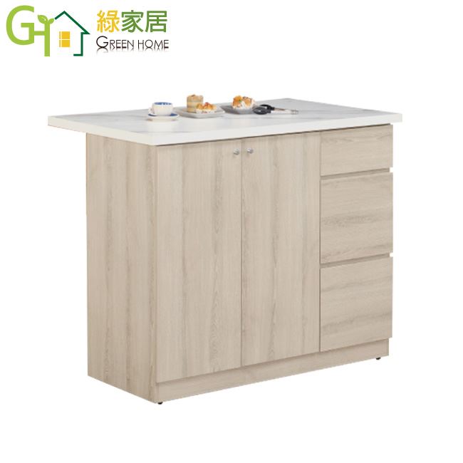 【綠家居】扎爾 雙色4尺二門三抽餐櫃/中島餐桌