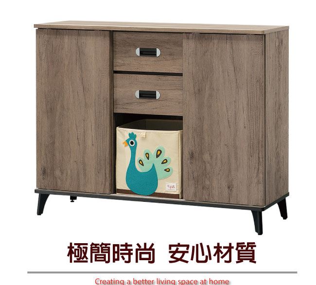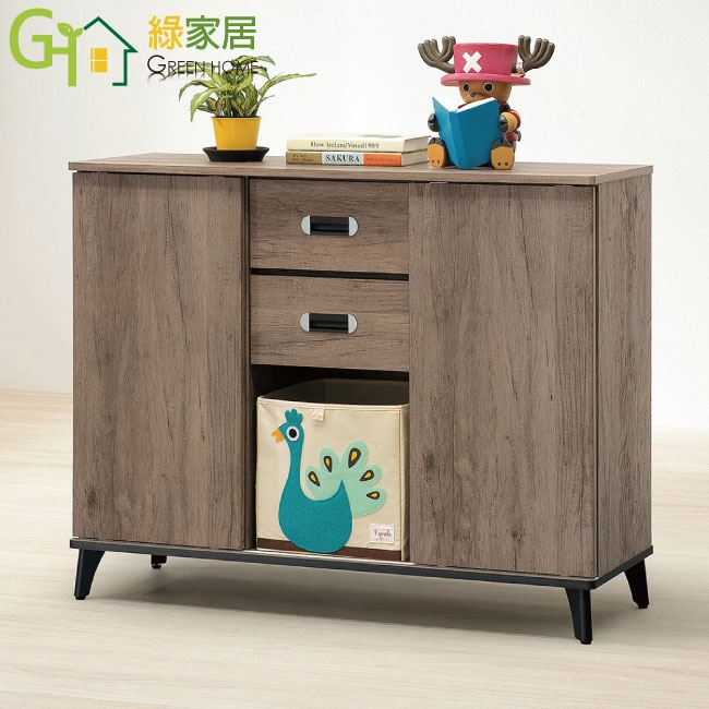 【綠家居】史卡育 現代4尺推門二抽餐櫃/收納櫃