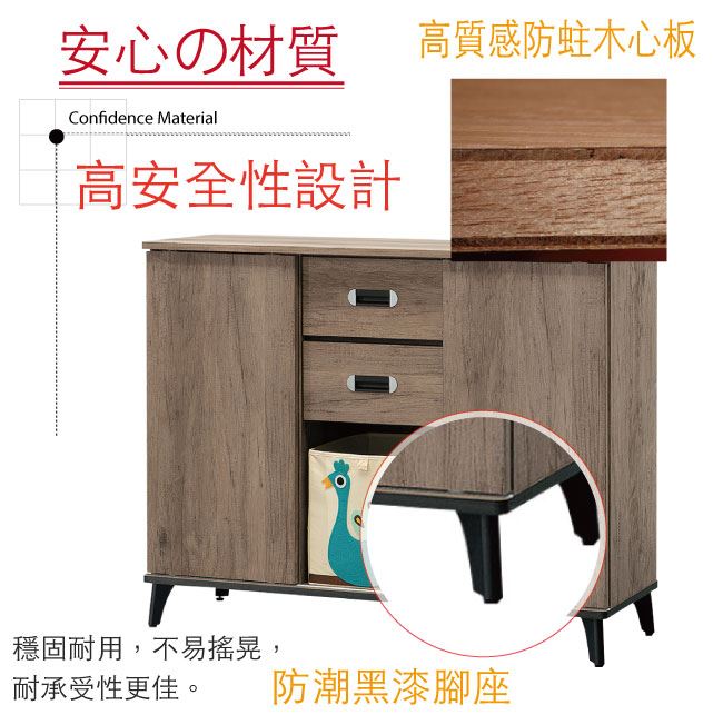 材質 | ◆產品名稱:【綠家居】史卡育 現代4尺推門二抽餐櫃/收納櫃 尺寸:(寬)120x(深)39.5x(高)95.5/公分 ◆材質: 材質:防蛀木心板+五金滑軌結構+防潮黑漆腳座 塗漆:外層採用優莉坦耐磨全包式噴漆處理 |