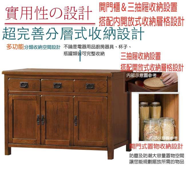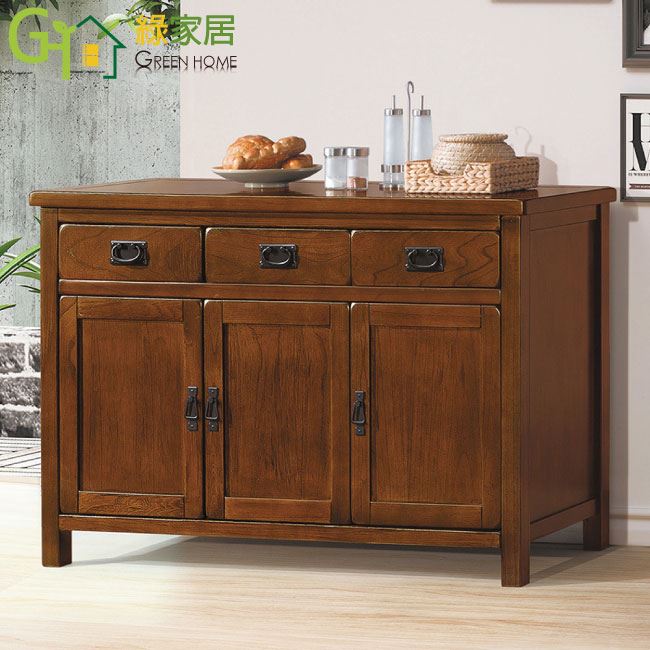 【綠家居】特馬爾 淺胡桃4.2尺實木三門餐櫃