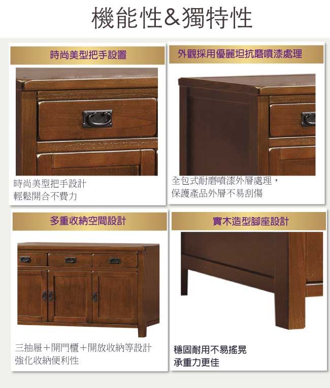 商品介紹 | 【綠家居】特馬爾 淺胡桃4.2尺實木三門餐櫃 淺胡桃木紋色系+現代簡約風格+安心材質製造,整體採用松木實木+防潮耐磨腳座+五金滑軌結構+防夾手緩衝門片五金等安心材質製造,產品外層採用防潮耐磨噴漆處理搭配採用開門櫃+三抽屜+內開放式收納等收納空間設計,全由專人配送到家,專業安心服務,替你省下更多時間! 【商品特色】 淺胡桃木紋色系+現代簡約風格+安心材質製造,使用放心+搭配居家更便利 採用松木實木+防潮耐磨腳座+五金滑軌結構+防夾手緩衝門片五金等安心材質製造 產品外層採用防潮耐磨噴漆處理 搭配採用開門櫃+三抽屜+內開放式收納等收納空間設計 此商品不需要DIY組立,此商品為組立後之成品 品質保證、專業設計、貼心服務 全由專人配送到家,專業安心服務,替您省下更多時間 |