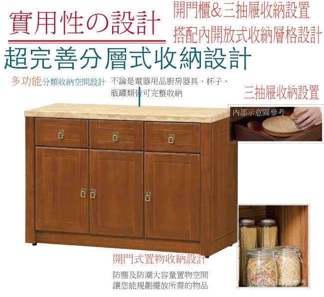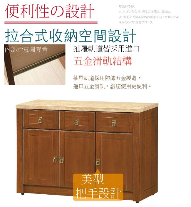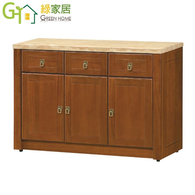 【綠家居】布塞爾 樟木紋4尺雲紋石面實木餐櫃