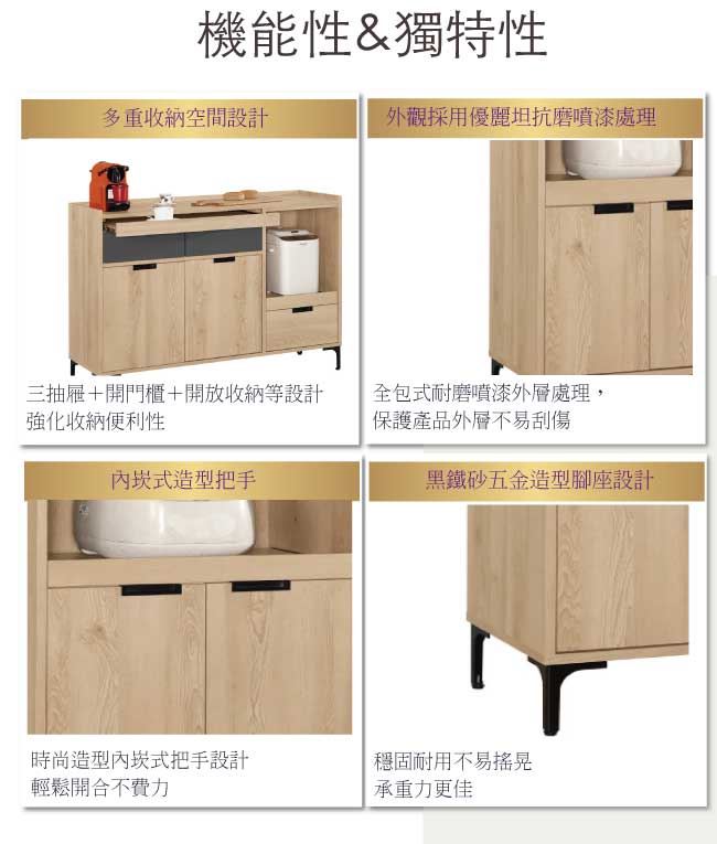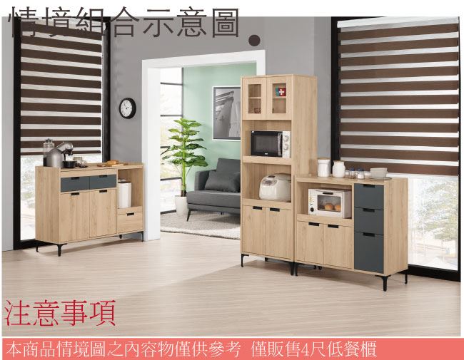 【綠家居】卡泰 雙色4尺二門三抽餐櫃
