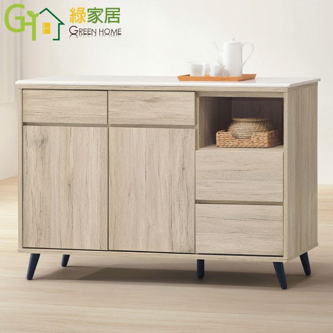 【綠家居】艾歐柏 時尚4尺雲紋石面餐櫃
