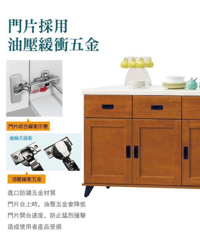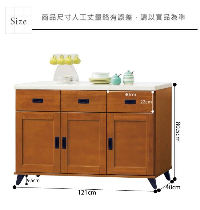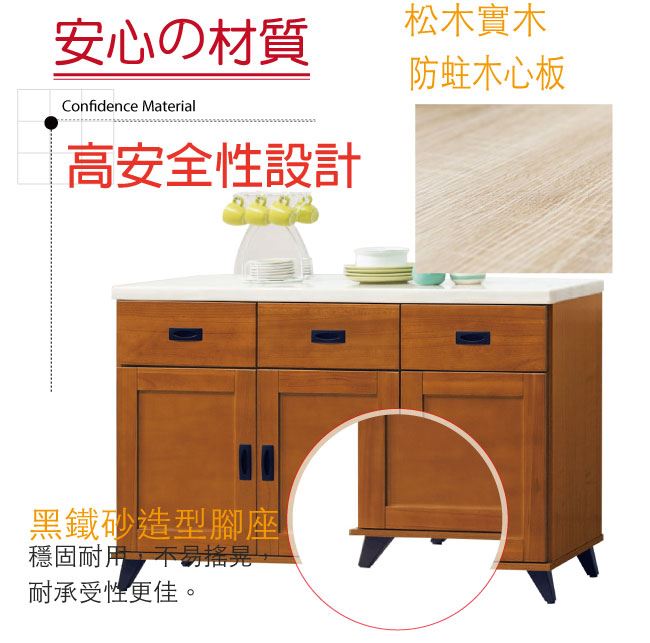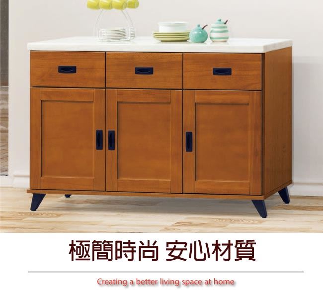 材質 | ◆產品名稱: 【綠家居】辛卡 時尚4尺雲紋石面餐櫃/收納櫃 尺寸:(寬)121x(深)40x(高)80.5公分 ◆材質: 材質:松木實木+防蛀木心板+黑鐵砂腳座+防夾手緩衝門片五金+五金滑軌結構+2cm雲紋石面板 外層採用全包式防潮耐磨噴漆處理