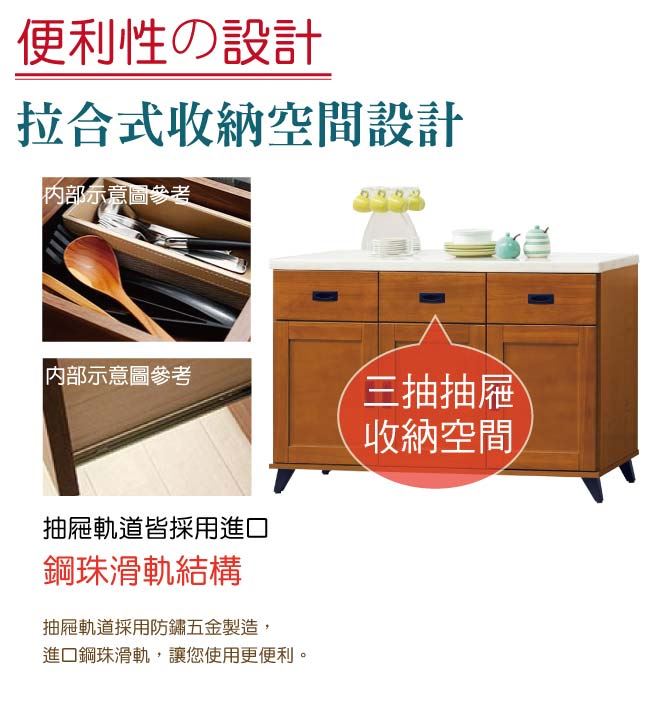 商品 介紹 | 【綠家居】辛卡 時尚4尺雲紋石面餐櫃/收納櫃 樟木紋色系+現代簡約風格+安心材質製造,整體採用松木實木+防蛀木心板+黑鐵砂腳座+防夾手緩衝門片五金+五金滑軌結構+2cm雲紋石面板等安心材質製造,外層採用全包式防潮耐磨噴漆處理搭配採用開門櫃+三抽屜+內開放式收納層格等收納空間設計,全由專人配送到家,專業安心服務,替你省下更多時間! 【商品特色】 樟木紋色系+現代簡約風格+安心材質製造,使用放心+搭配居家更便利 採用松木實木+防蛀木心板+黑鐵砂腳座+防夾手緩衝門片五金+五金滑軌結構+2cm雲紋石面板等安心材質製造 採用開門櫃+三抽屜+內開放式收納層格等收納空間設計 此商品不需要DIY組立,此商品為組立後之成品 品質保證、專業設計、貼心服務 全由專人配送到家,專業安心服務,替您省下更多時間 |