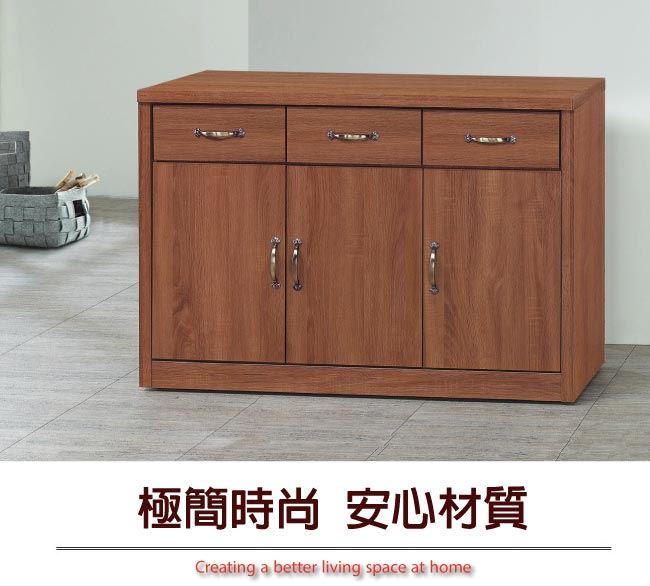 商品 介紹 | 【綠家居】卡德 時尚4尺三門三抽餐櫃/收納櫃 柚木紋色系+現代簡約風格+安心材質製造,整體採用防蛀木心板+防潮耐磨腳座+五金滑軌結構等安心材質製造,外層採用全包式防潮耐磨噴漆處理搭配採用開門櫃+三抽屜+內開放式收納層格等收納空間設計,全由專人配送到家,專業安心服務,替你省下更多時間! 【商品特色】 柚木紋色系+現代簡約風格+安心材質製造,使用放心+搭配居家更便利 採用防蛀木心板+防潮耐磨腳座+五金滑軌結構等安心材質製造 採用開門櫃+三抽屜+內開放式收納層格等收納空間設計 此商品不需要DIY組立,此商品為組立後之成品 品質保證、專業設計、貼心服務 全由專人配送到家,專業安心服務,替您省下更多時間 |