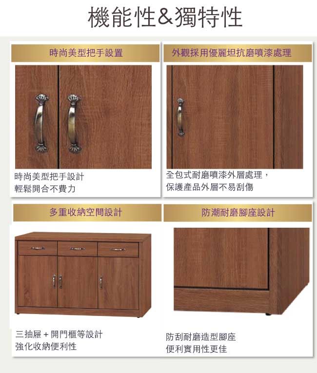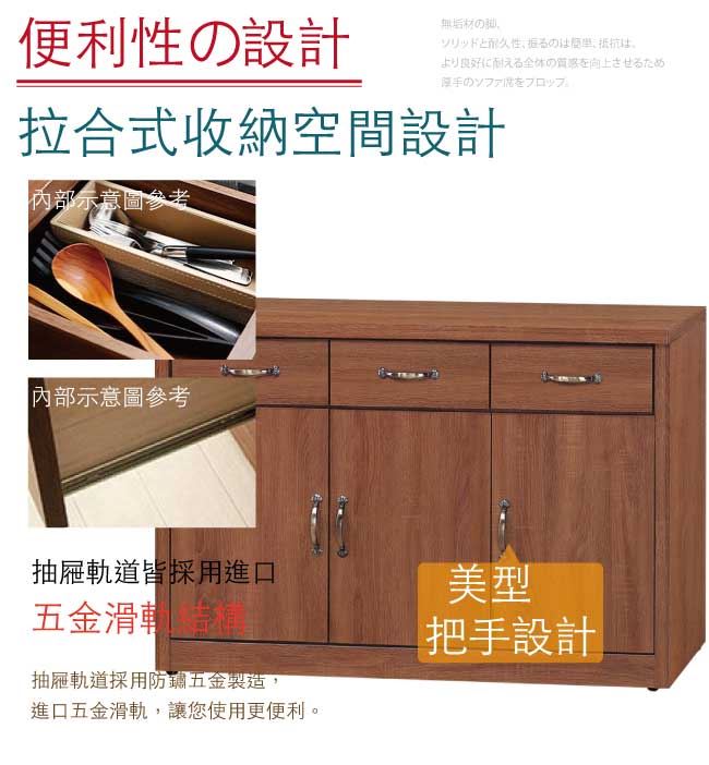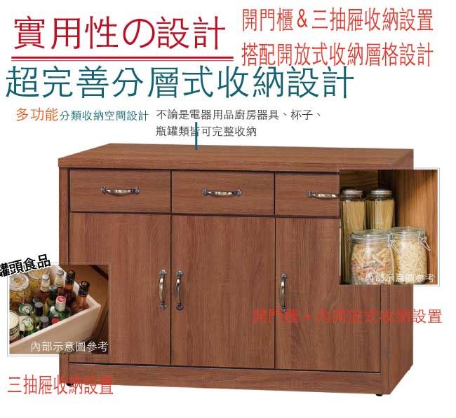 【綠家居】卡德 時尚4尺三門三抽餐櫃/收納櫃