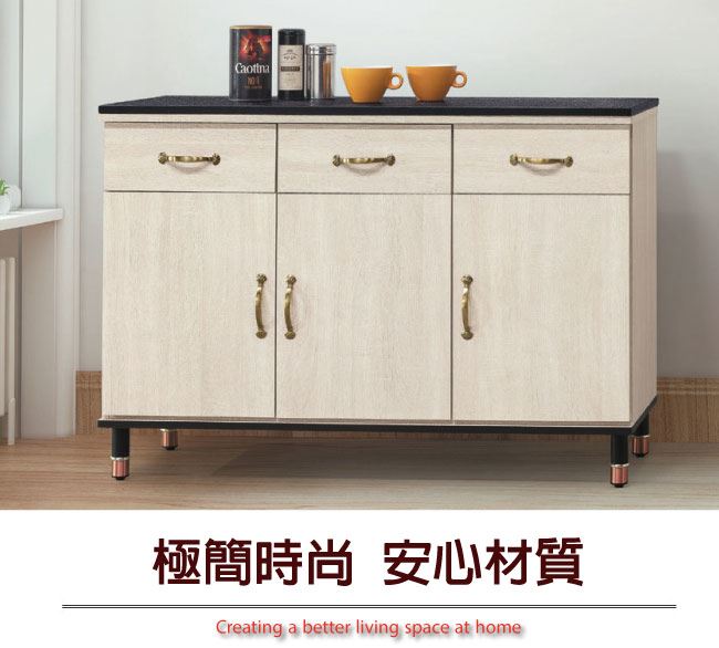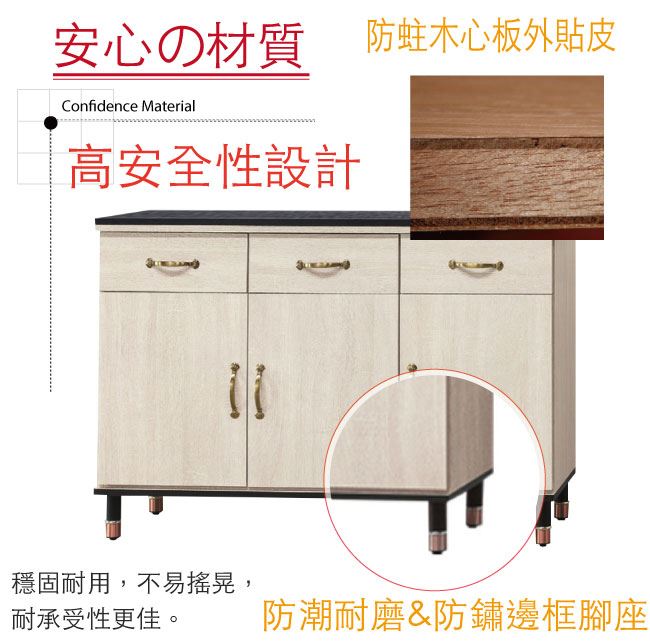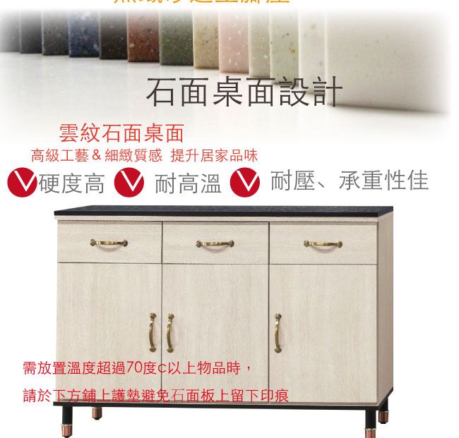 材質 | ◆產品名稱: 【綠家居】瓦利德 時尚4尺雲紋石面餐櫃/收納櫃 尺寸:(寬)121x(深)41x(高)82公分 ◆材質: 材質:防蛀木心板+防潮耐磨&防鏽邊框腳座+五金滑軌結構+12mm雲紋石面板 外層採用全包式防潮耐磨噴漆處理