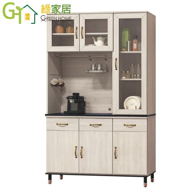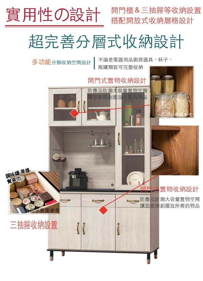 【綠家居】瓦利德 時尚4尺雲紋石面餐櫃/收納櫃組合