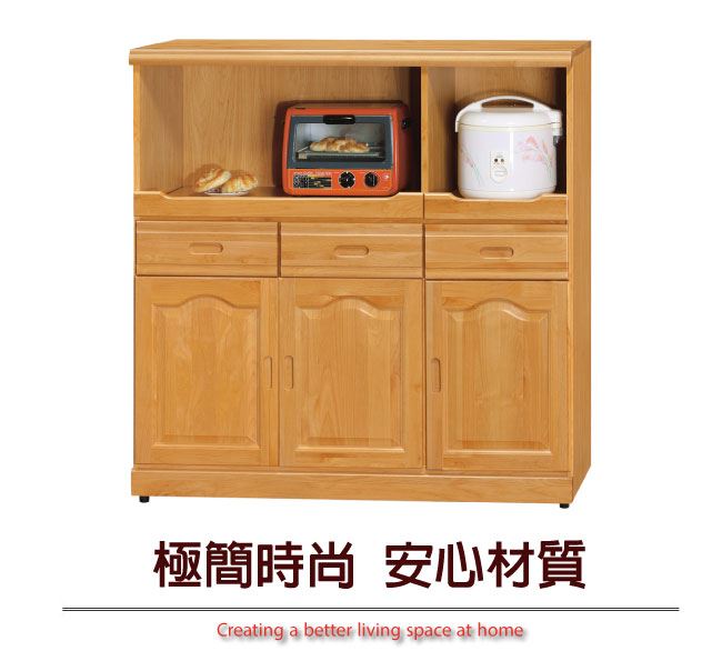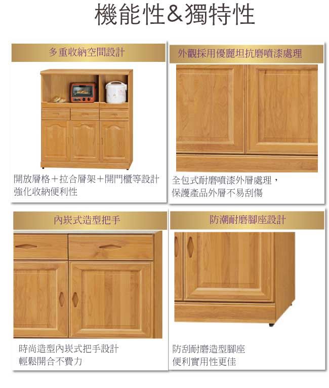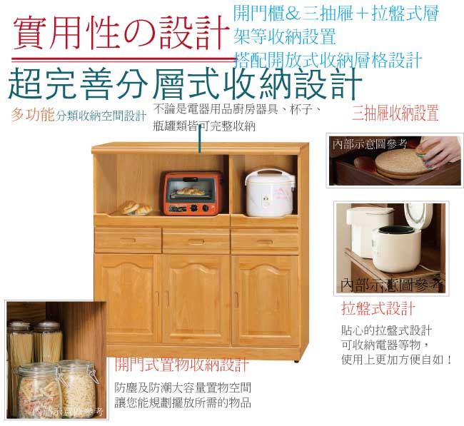 【綠家居】古特菲 赤楊木4尺三門三抽餐櫃