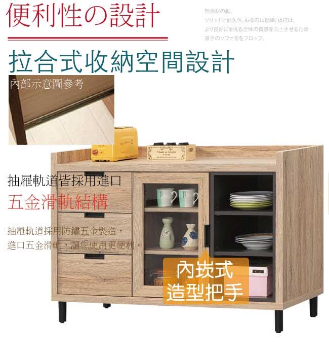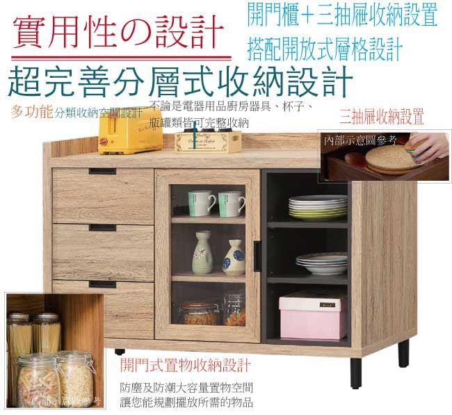【綠家居】羅特希 橡木紋4尺單門三抽餐櫃
