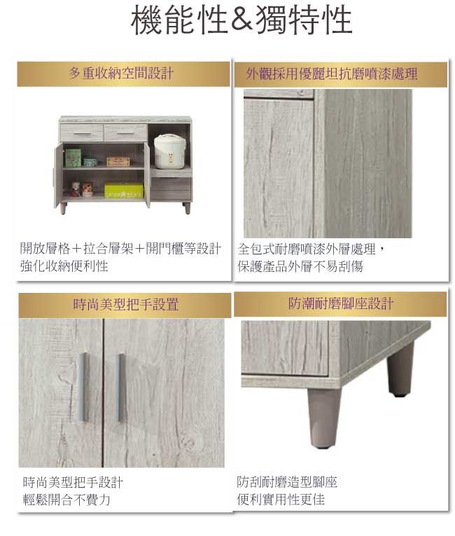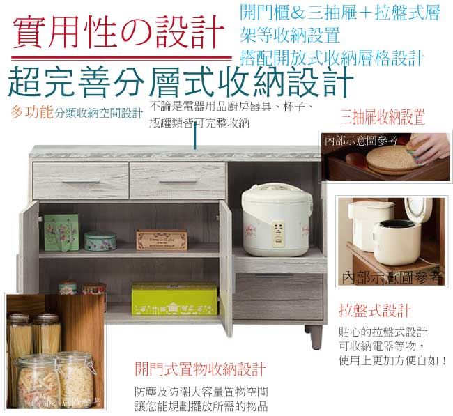 【綠家居】瑪波特 橡木紋4尺二門三抽餐櫃
