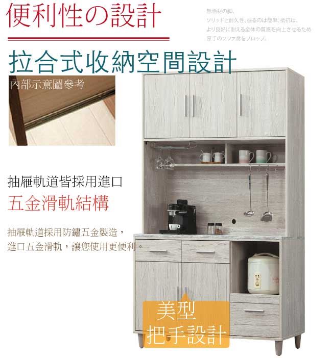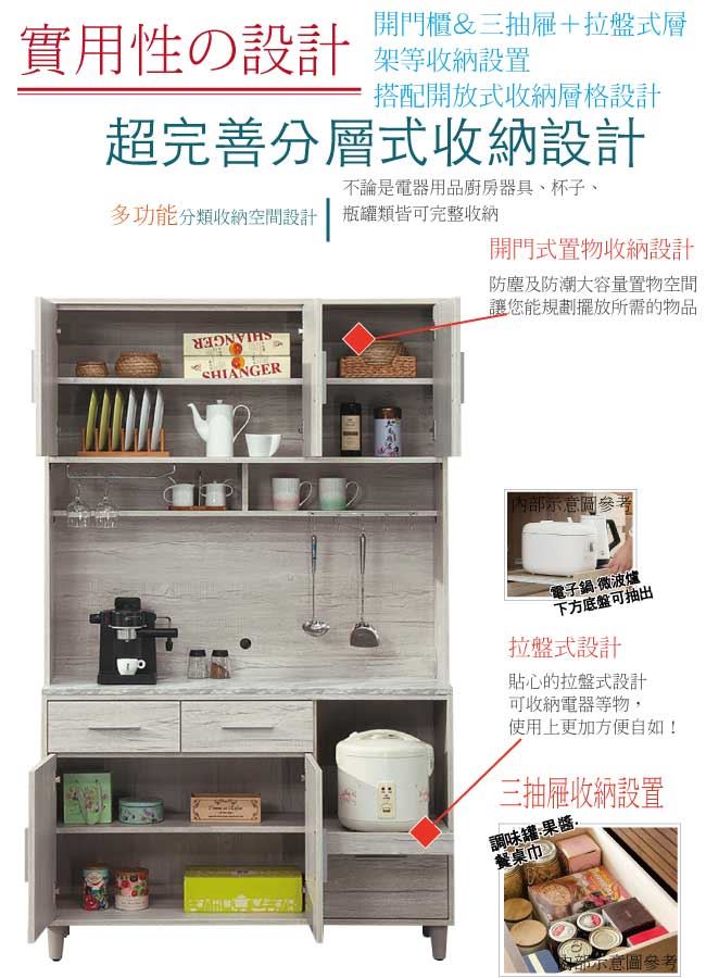 【綠家居】瑪波特 橡木紋4尺五門三抽高餐櫃組合