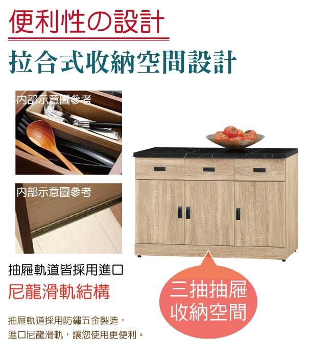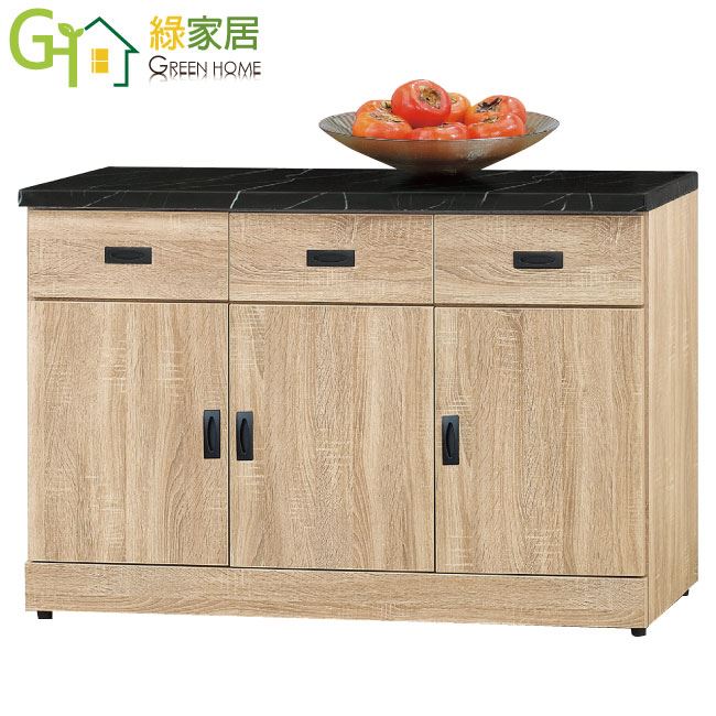 【綠家居】戴納 現代4尺雲紋石面餐櫃/收納櫃