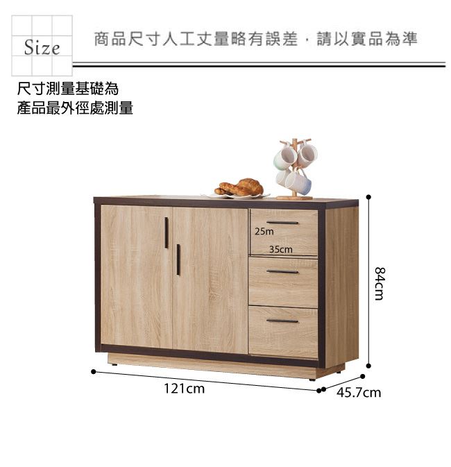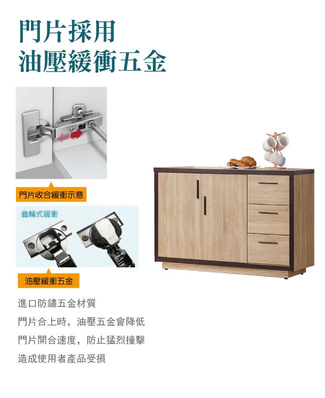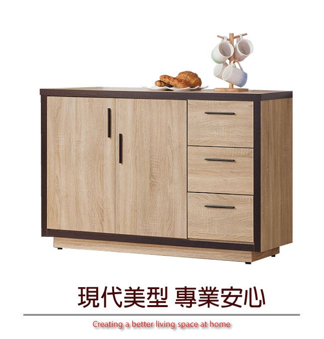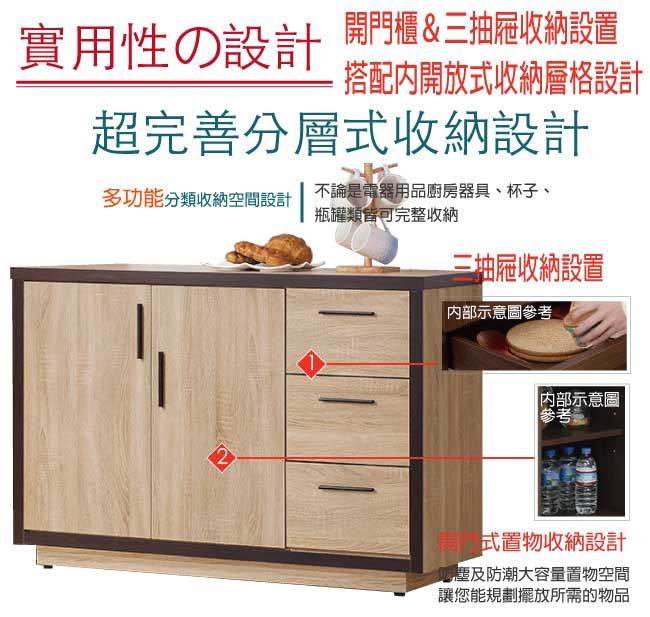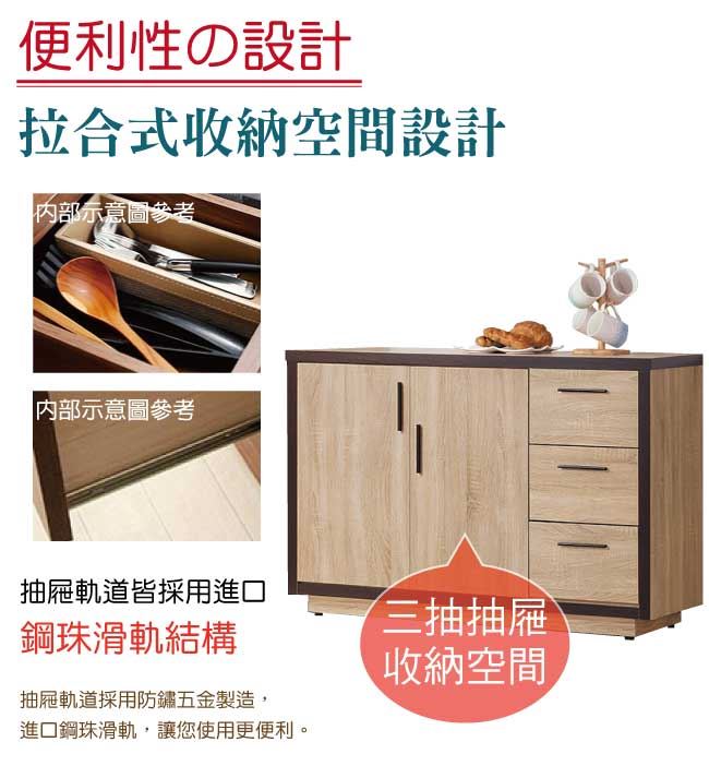 【綠家居】格利波 現代4尺二門三抽餐櫃/收納櫃