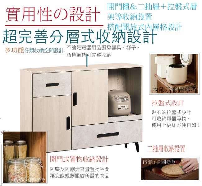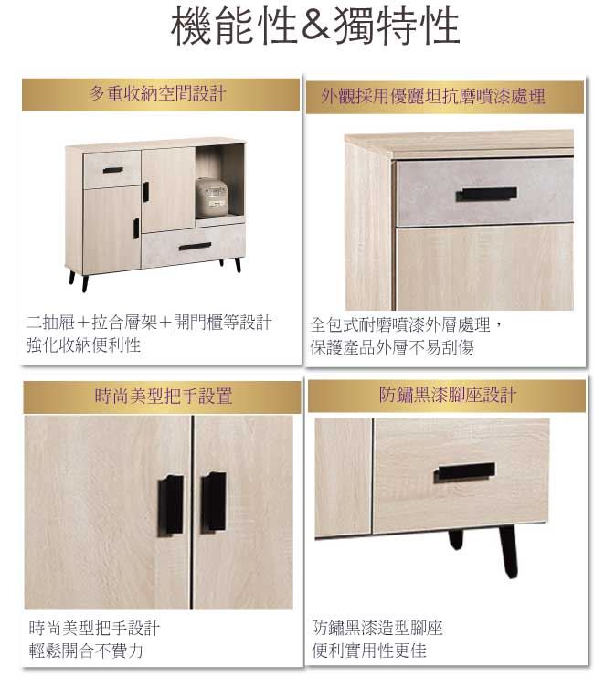 【綠家居】西德 淺橡4尺二門二抽餐櫃