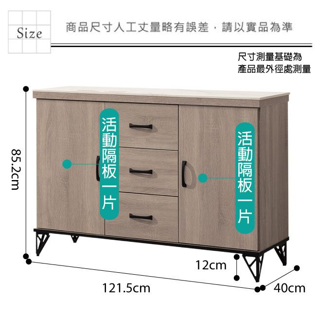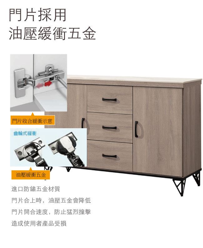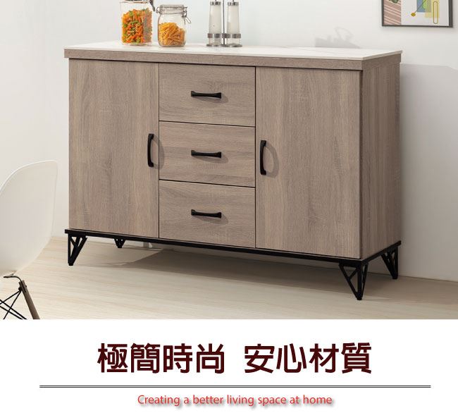 材質 | ◆產品名稱: 【綠家居】菲希 灰橡4.1尺岩板桌面餐櫃 產品尺寸: 尺寸:(寬)121.5x(深)40x(高)85.2公分 ◆材質: 材質:防蛀木心板+防鏽黑漆腳座+12mm岩板桌面板 材質:五金滑軌結構+防夾手緩衝門片五金 塗漆:優利坦全包式耐磨噴漆處理