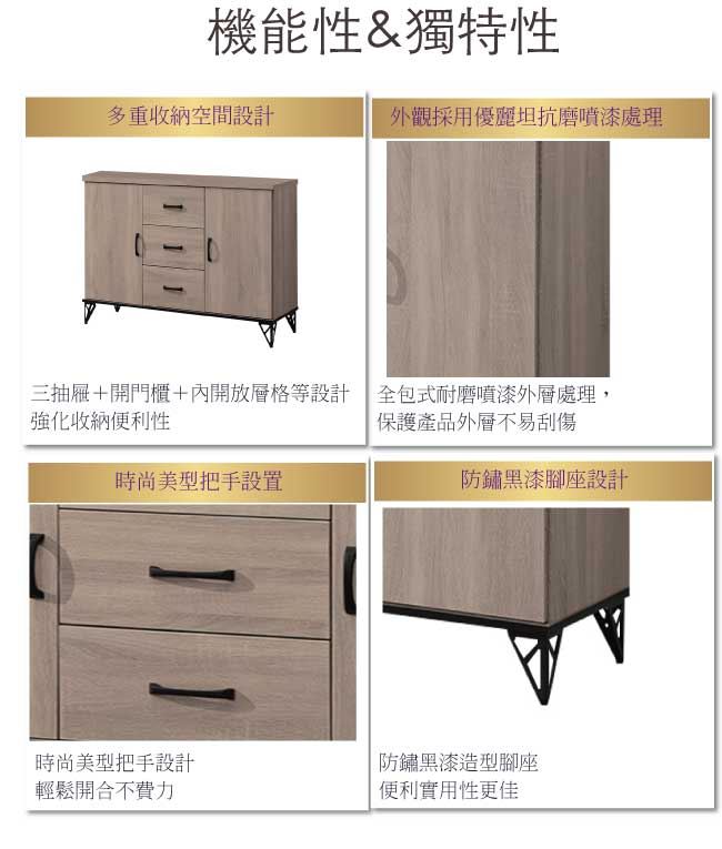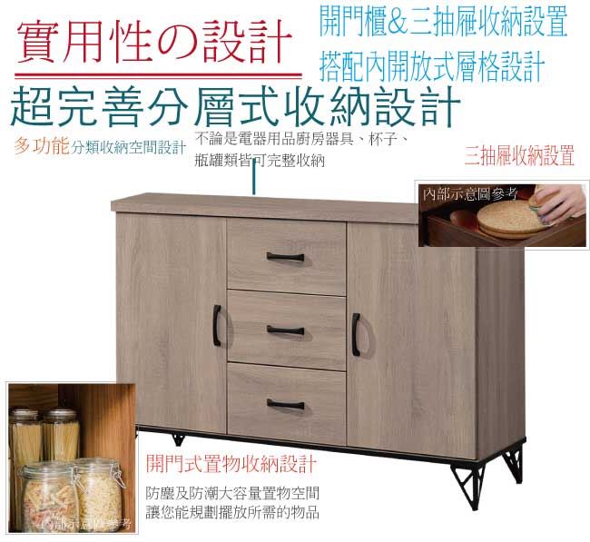 【綠家居】菲希 灰橡4.1尺二門三抽餐櫃