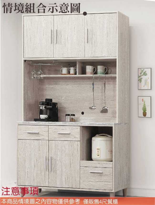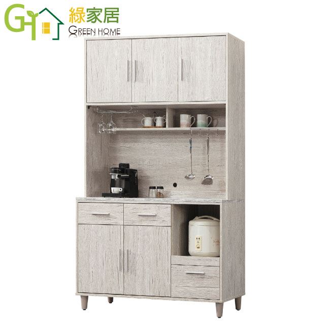 【綠家居】穆伊4尺五門三抽高餐櫃/收納櫃組合