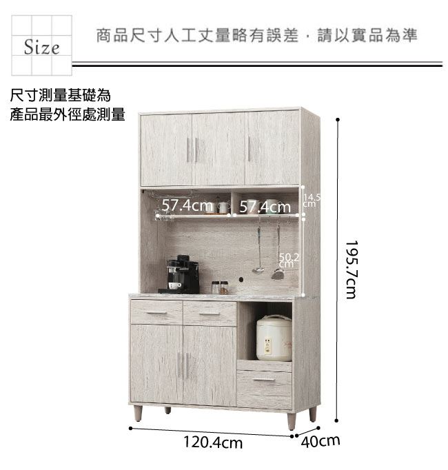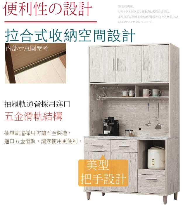 尺寸:(寬)120.4(深)40(高)195.7公分 ◆材質: 材質:防蛀木心板+防潮耐磨腳座+防夾手緩衝門片五金+五金滑軌結構+仿雲紋石面紋路木質桌面板 噴漆:防潮耐磨噴漆處理