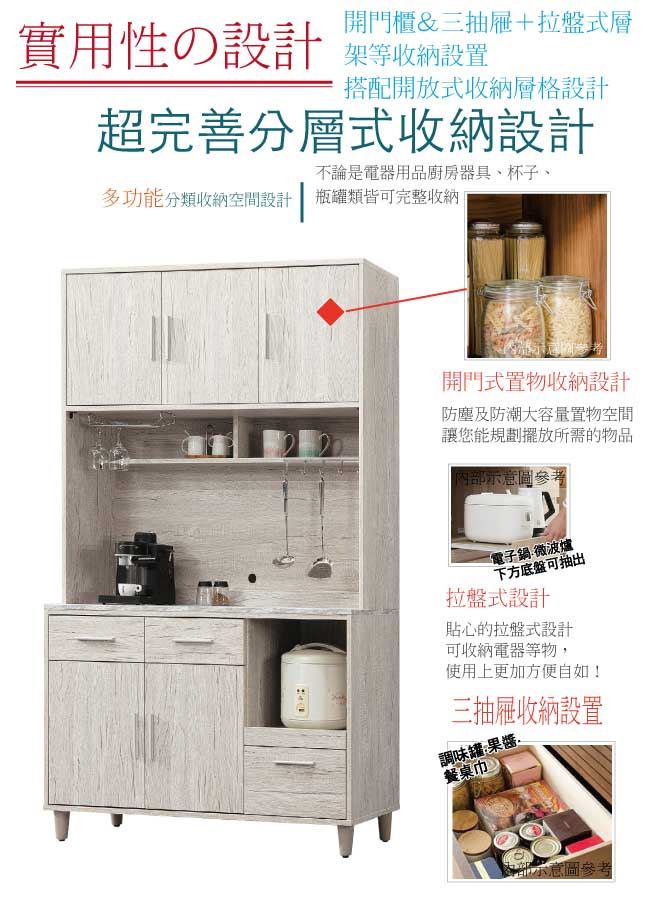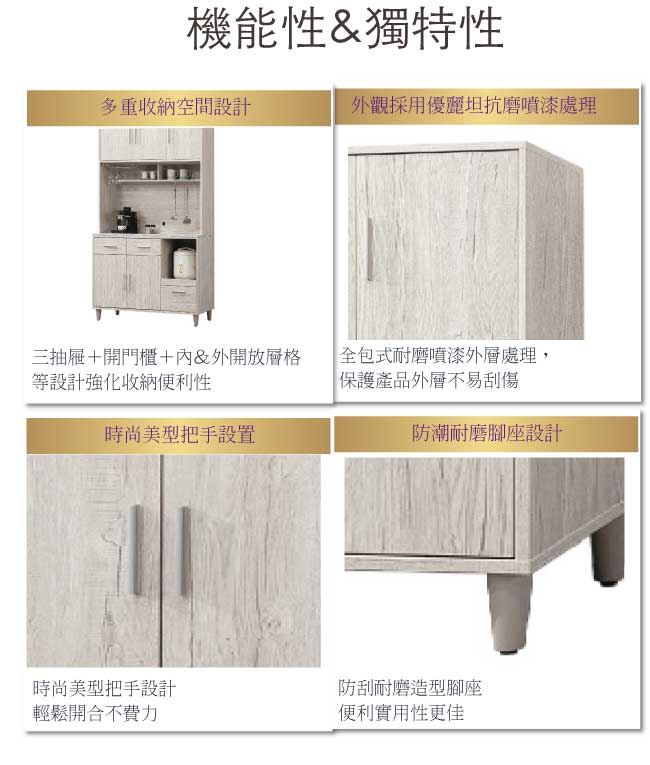 - ◆產品名稱:【綠家居】穆伊4尺五門三抽高餐櫃/收納櫃組合