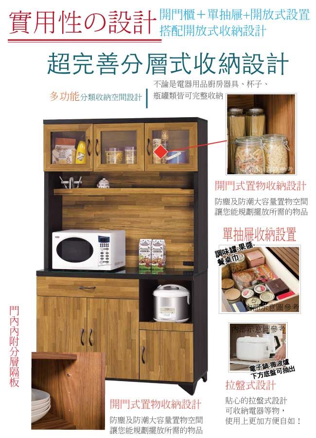 【綠家居】穆納4尺六門單抽高餐櫃/收納櫃組合