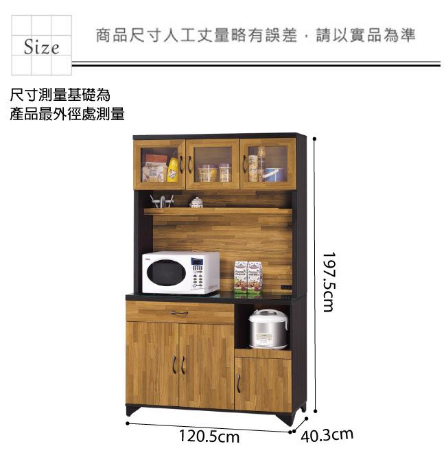 尺寸:(寬)120.5(深)40.3(高)197.5公分 ◆材質: 材質:防蛀木心板+防潮黑漆腳座+防夾手緩衝門片五金+五金滑軌結構 噴漆:防潮耐磨噴漆處理