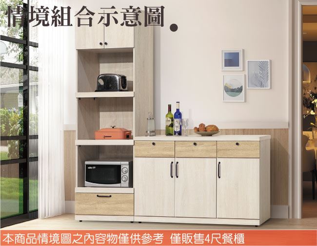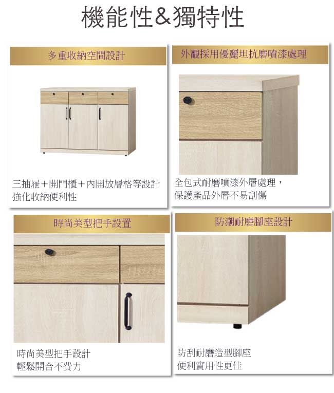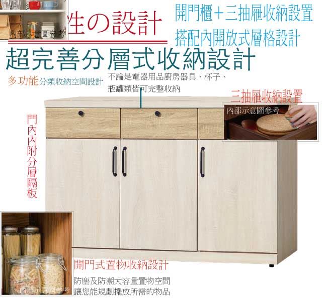 【綠家居】柯希依4尺三門三抽餐櫃/收納櫃