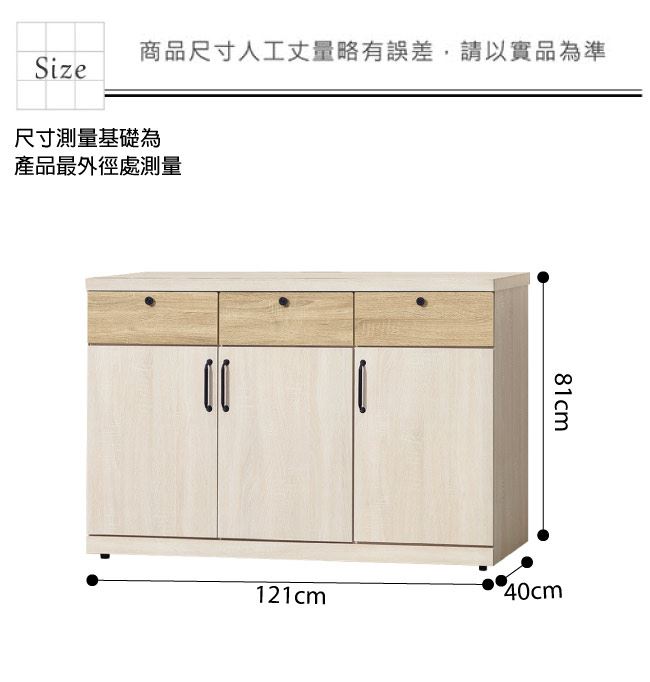 - ◆產品名稱:【綠家居】柯希依4尺三門三抽餐櫃/收納櫃