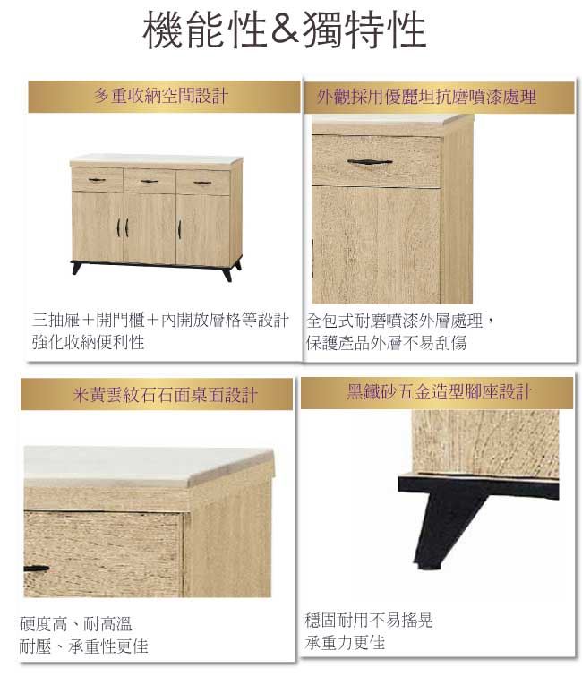 - ◆產品名稱:【綠家居】波力士4尺雲紋石面低餐櫃/收納櫃