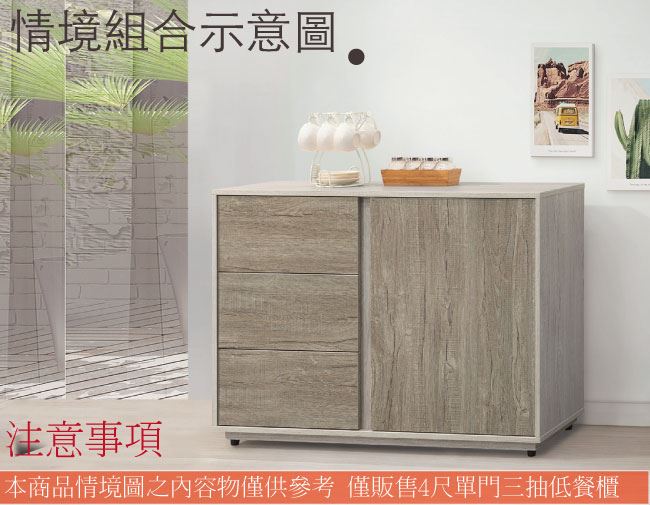 【綠家居】夏丹雙色4尺單門三抽餐櫃