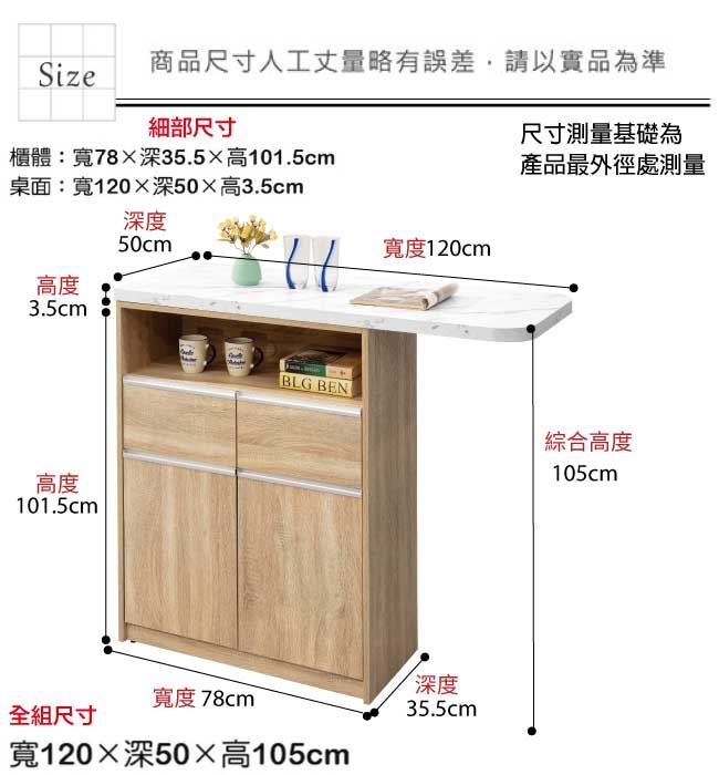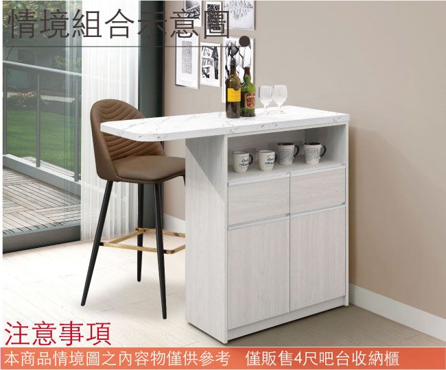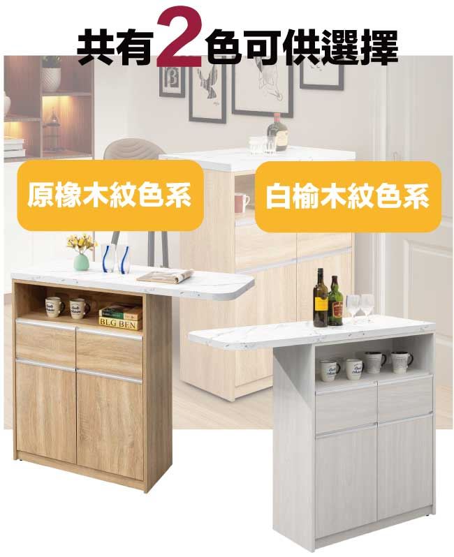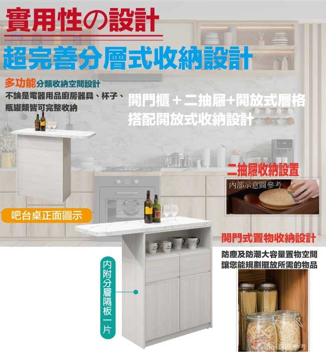 【綠家居】溫斯4尺二門二抽吧台桌/中島桌櫃(二色可選)