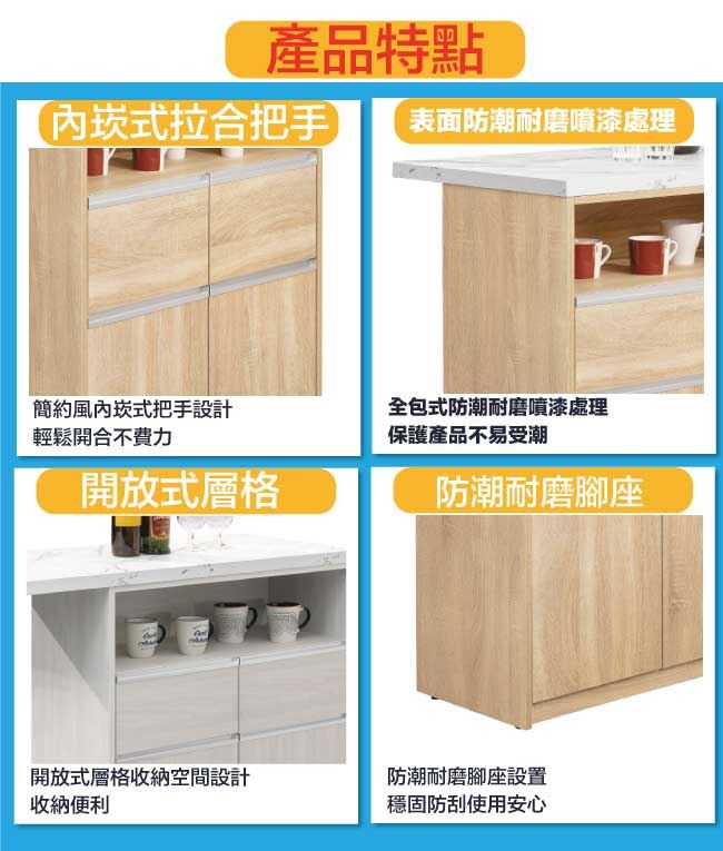 材質 | ◆產品名稱:【綠家居】溫斯4尺二門二抽吧台桌/中島桌櫃(二色可選) 尺寸:(寬)120x(深)50(高)105公分 ◆材質: 材質:防蛀木心板+防潮耐磨腳座+五金滑軌結構+防夾手緩衝門片五金 噴漆:防潮耐磨噴漆處理