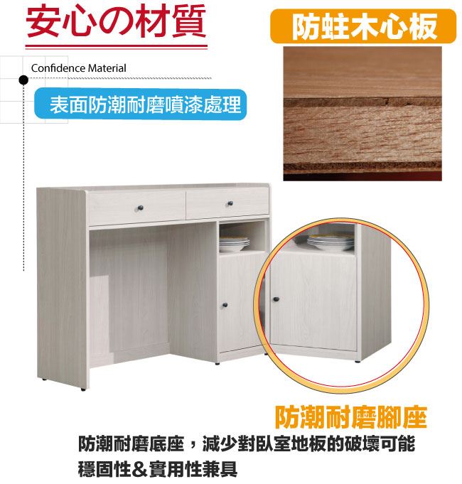 商品 介紹 | 【綠家居】溫斯4尺二抽單門低餐櫃/收納櫃 白榆木紋色系+現代簡約風格+安心材質製造,整體採用防蛀木心板+防潮耐磨腳座+五金滑軌結構+防夾手緩衝門片五金等安心材質製造,產品外層採用防潮耐磨噴漆處理搭配採用開門櫃+二抽屜+開放式層格等收納空間設計,全由專人配送到家,專業安心服務,替你省下更多時間! 【商品特色】 白榆木紋色系+現代簡約風格+安心材質製造,使用放心+搭配居家更便利 採用防蛀木心板+防潮耐磨腳座+五金滑軌結構+防夾手緩衝門片五金等安心材質製造 產品外層採用防潮耐磨噴漆處理 採用開門櫃+二抽屜+開放式層格等收納空間設計 此商品不需要DIY組立,此商品為組立後之成品 品質保證、專業設計、貼心服務 全由專人配送到家,專業安心服務,替您省下更多時間 |