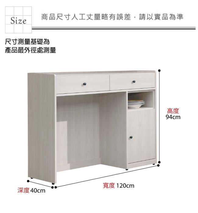 材質 | ◆產品名稱:【綠家居】溫斯4尺二抽單門低餐櫃/收納櫃 餐櫃尺寸:(寬)120x(深)40(高)94公分 ◆材質: 材質:防蛀木心板+防潮耐磨腳座+五金滑軌結構+防夾手緩衝門片五金 噴漆:防潮耐磨噴漆處理