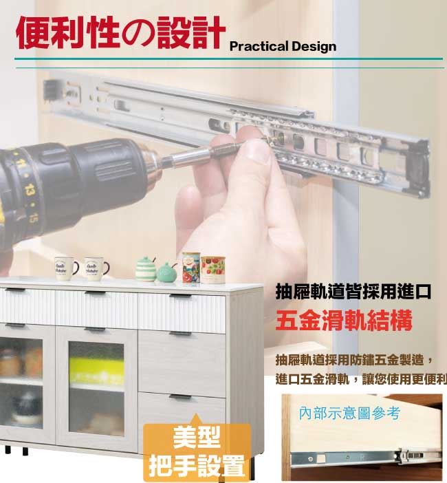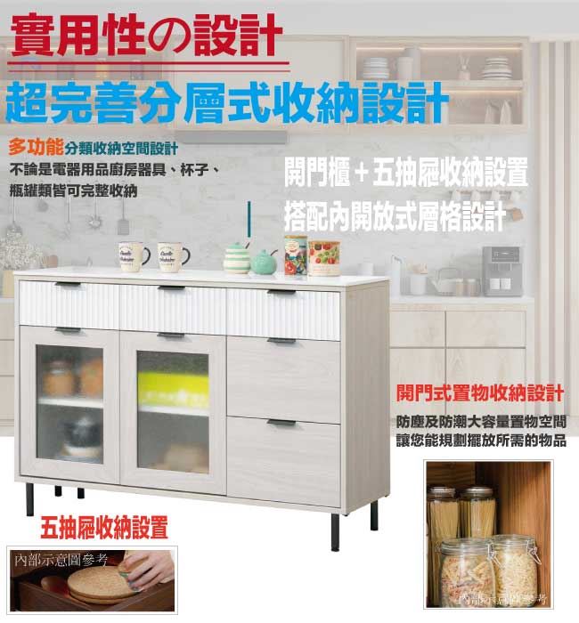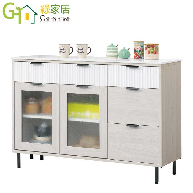 【綠家居】剛果雙色4尺岩板五抽餐櫃/收納櫃