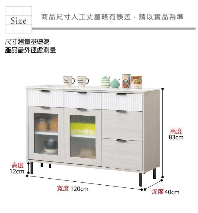 材質 | ◆產品名稱:【綠家居】剛果雙色4尺岩板五抽餐櫃/收納櫃 尺寸:(寬)120x(深)40(高)83公分 ◆材質: 材質:防蛀木心板+防鏽黑漆五金腳座(12cm高)+五金滑軌結構+12mm高硬度岩板 噴漆:防潮亮面&耐磨噴漆處理