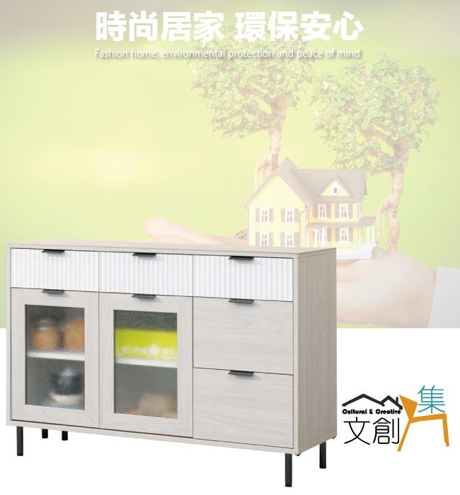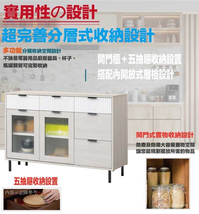 【綠家居】剛果雙色4尺二門五抽餐櫃/收納櫃