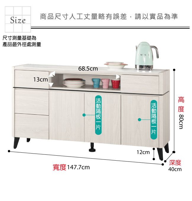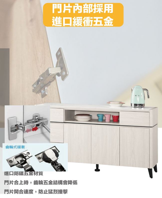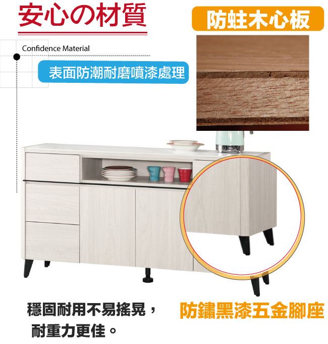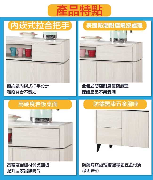 材質 | ◆產品名稱:【綠家居】卡蘿莉岩板4.9尺三門四抽低餐櫃 餐櫃尺寸:(寬)147.7x(深)40(高)80公分 ◆材質: 材質:防蛀木心板+防鏽五金腳座+防夾手緩衝門片五金+五金滑軌結構+12mm高硬度岩板桌面板 噴漆:防潮耐磨噴漆處理