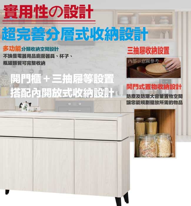 【綠家居】卡蘿莉岩板4尺三門三抽低餐櫃