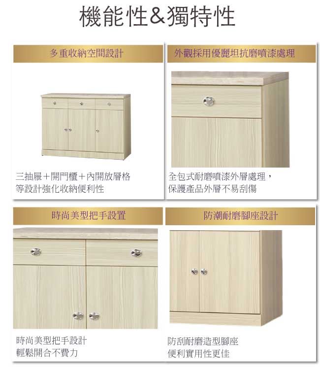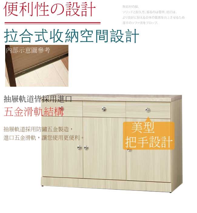 【綠家居】米瑪4尺三門三抽餐櫃/收納櫃