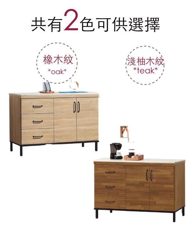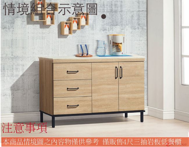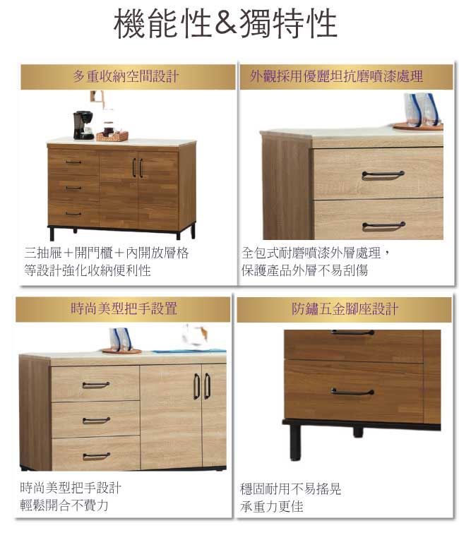 【綠家居】夏倫岩板4尺二門三抽餐櫃(二色可選)