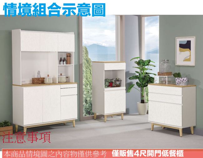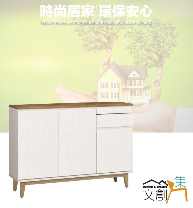商品 介紹 | 【綠家居】奈吉亞雙色4尺三門單抽拉盤低餐櫃/收納櫃 木紋雙色系+現代簡約風格+安心材質製造,使用放心+搭配居家更便利,整體採用防蛀木心板+防潮耐磨腳座+五金滑軌結構等材質搭配外層採用優莉坦耐磨&亮面全包式噴漆處理 ,採用開門櫃+單抽屜+拉盤式層架+內開放層格等收納空間設計,全由專人配送到家,專業安心服務,替你省下更多時間! 【商品特色】 木紋雙色系+現代簡約風格+安心材質製造,使用放心+搭配居家更便利 防蛀木心板+防潮耐磨腳座+五金滑軌結構等材質 採用開門櫃+單抽屜+拉盤式層架+內開放層格等收納空間設計 此商品不需要DIY組立,此商品為組立後之成品 品質保證、專業設計、貼心服務 全由專人配送到家,專業安心服務,替您省下更多時間 |